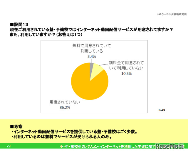 デジタル・ナレッジは8月23日、同社のeラーニング戦略研究所が実施した「小・中・高校生のパソコン・インターネットを利用した学習に関する調査」の結果を発表するセミナーをeラーニング・ラボ秋葉原にて開催した。