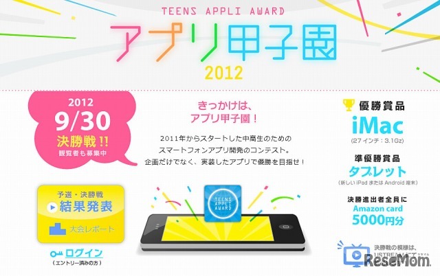 D2Cは、全国の中高生を対象としたスマートフォン向けアプリ開発コンテスト「アプリ甲子園 2012」の決勝進出者11組を決定、9月30日に決勝戦を実施する。