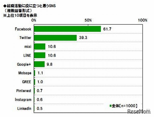 英会話のGabaは10月2日、「大学生・大学院生のSNS利用に関する調査」結果を発表した。就職活動に役立つと思うSNSは、6割以上の学生が「Facebook」を挙げ、2位の「Twitter」39.3%を大きく引き離した。