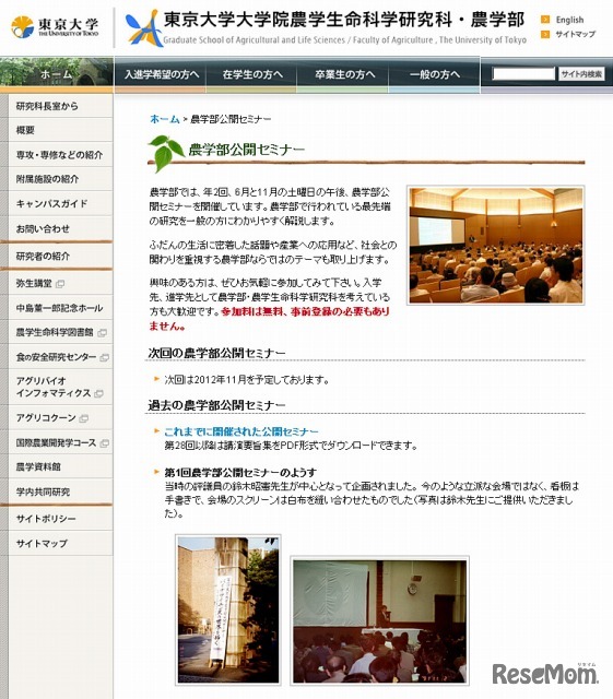東京大学農学部(webサイト)