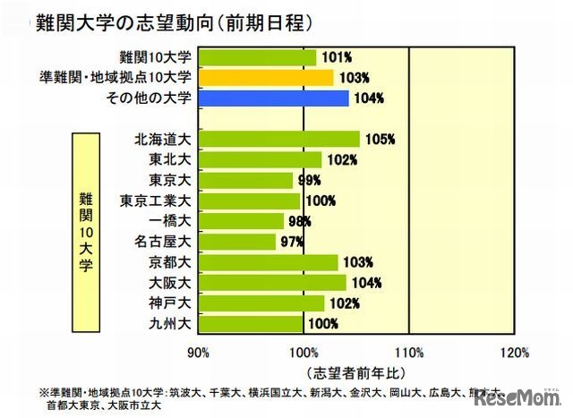 河合塾は10月24日、2012年8月に実施した第2回全統マーク模試の結果をもとに2013年度大学入試動向をまとめ、サマリー資料をホームページに公開した。受験者の志望動向から国公立と私立大学のどちらも文低理高・安全志向の傾向がみられた。