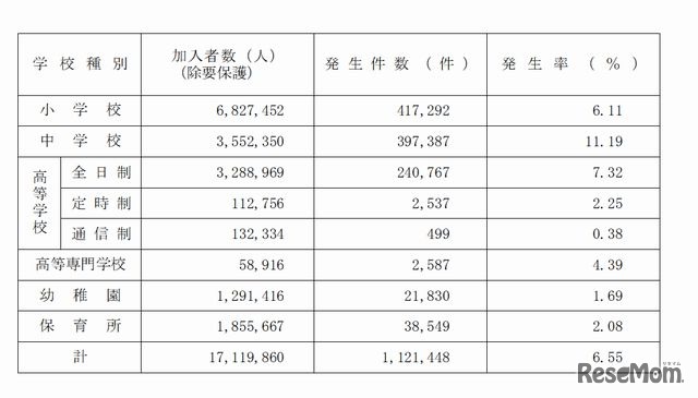 保育園や幼稚園、小中高校や通園・通学中に起きた事故などで災害共済給付金が支払われた件数は、2011年度に211万940件で、そのうち死亡見舞金が給付されたのは82件にのぼることが日本スポーツ振興センターの調べにより明らかになった。