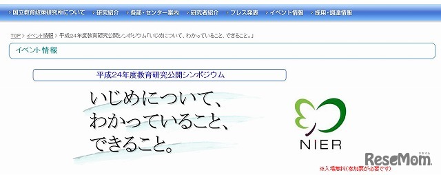 国立教育政策研究所は11月4日、いじめが背景事情として認められる生徒の自殺事案の発生を受け、研究成果とともに広く一般に伝えるための公開シンポジウム「いじめについて、わかっていること、できること。」を開催する。