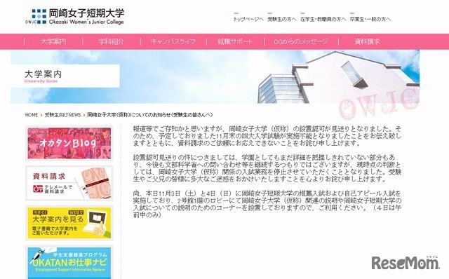 岡崎女子大学(仮称)のホームページ