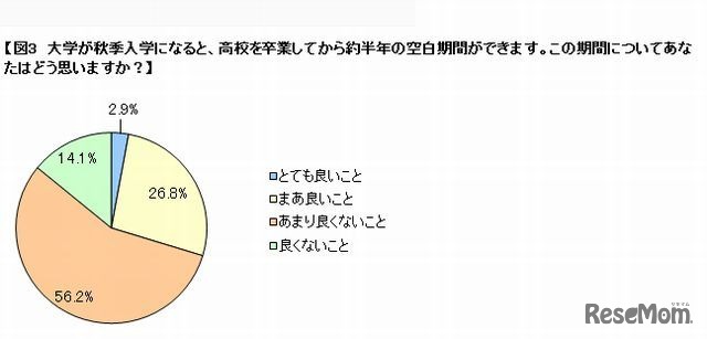 秋季入学制度の大学では、高校を卒業してから大学に入学するまでの間(ギャップターム)が半年近くと、長期間空いてしまう。この半年間のギャップタームに約7割の保護者が反対していることが、ベネッセ教育情報サイトが行ったアンケート調査により明らかになった。
