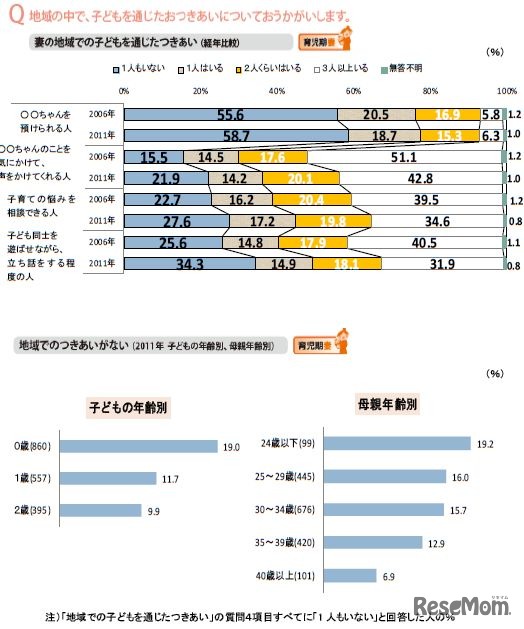 ベネッセ次世代育成研究所は11月16日、ひとりっこを持つ夫婦を対象とした「妊娠出産子育て基本調査」の結果を公表した。前回調査した2006年と比較して、夫の育児・家事参加時間が増加、保育への信頼や生活満足度も上昇したことがわかった。