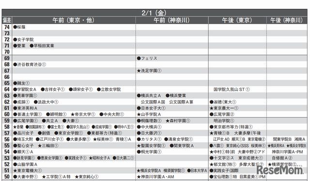 女子2月1日(一部抜粋)首都圏模試センター 2013入試用 予想偏差値一覧