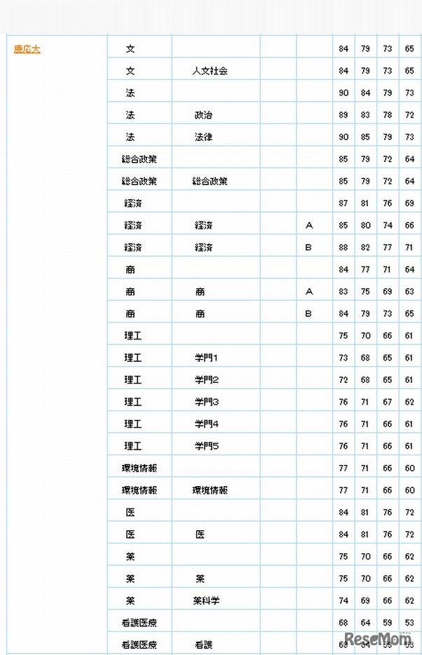 5段階判定による偏差値(慶應義塾大学)