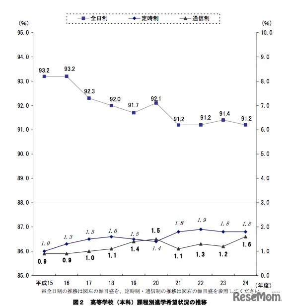 神奈川県は11月27日、「2012年度公立中学校卒業予定者の進路希望調査」の調査結果を公表した。卒業予定者全体の96.2%が進学を希望。旧学区を越えて、高等学校への進学を希望する生徒の割合は45.1%となり、学区が撤廃された2004年度以来、8年連続して上昇している。