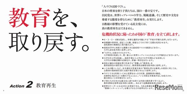12月16日の第46回衆議院議員総選挙を控え、各党のマニフェスト(政権公約)がまとまりつつある。各党のホームページに掲載されているマニフェストなどから、子育て支援策や教育関連の政策についてピックアップした。