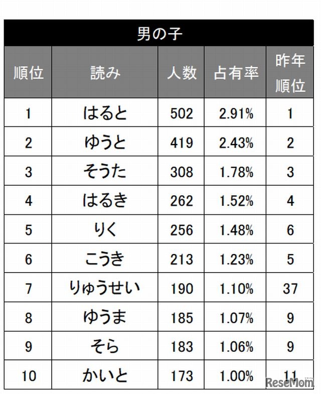 ベネッセコーポレーションは12月3日、2012年にもっとも多かった赤ちゃんの名前ランキングを発表した。男の子は「悠真」(主な読み:ゆうま)、女の子は「結愛」(主な読み:ゆあ)が1位となった。