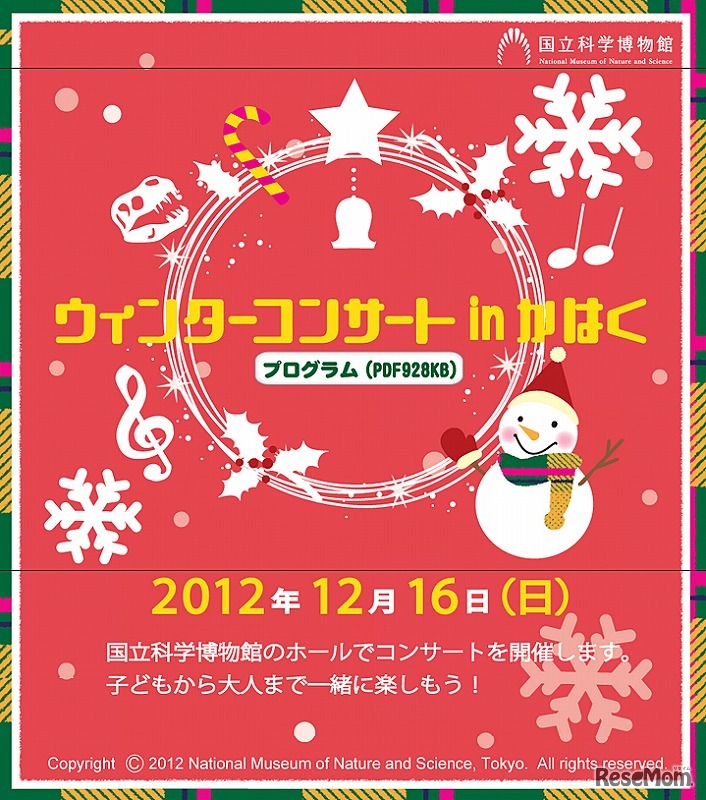 国立科学博物館では、「ウィンターコンサート in かはく」を12月16日に開催する。入場は無料。ただし常設展入館料(一般・大学生600円)は必要。