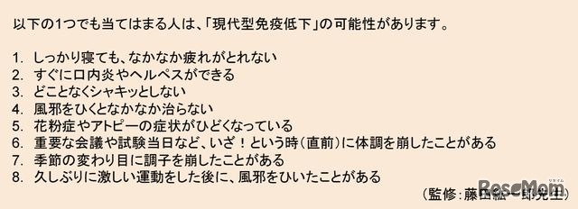 現代型免疫低下チェックシート