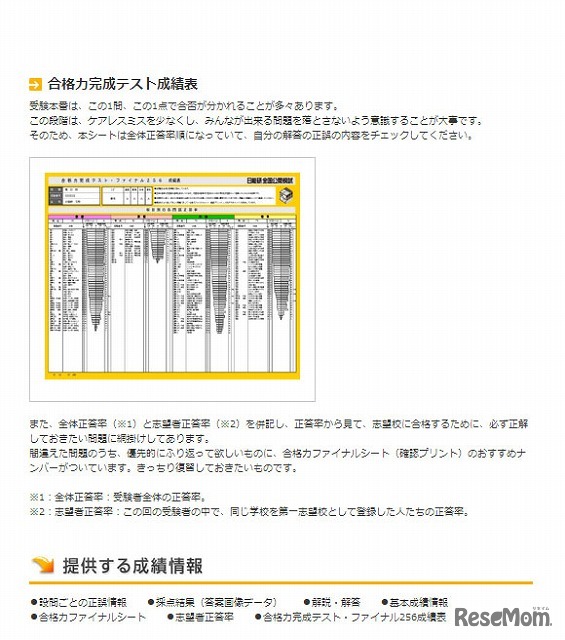 日能研は小学6年生を対象とした「合格力完成テスト・ファイナル256」を2013年1月7日、14日の両日に実施する。受験料は国語・算数・社会・理科の4教科は5,775円、国語・算数の2教科は4,725円となっている。