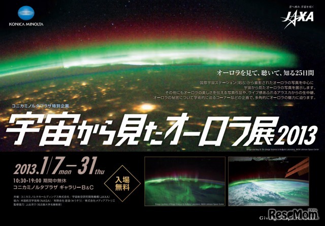 コニカミノルタと宇宙航空研究開発機構(JAXA)は、「宇宙から見たオーロラ展2013」を1月31日まで、コニカミノルタプラザ(東京都新宿区)で共同開催している。入場無料。