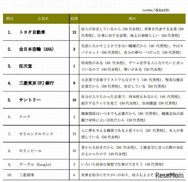 与信管理サービスを提供するリスクモンスターは1月18日、「子どもや孫に勤めてほしい企業」のアンケート調査結果を発表した。子どもに勤めてほしい企業の1位は「トヨタ自動車」、孫に勤めてほしい企業の1位は「全日本空輸(ANA)」であった。