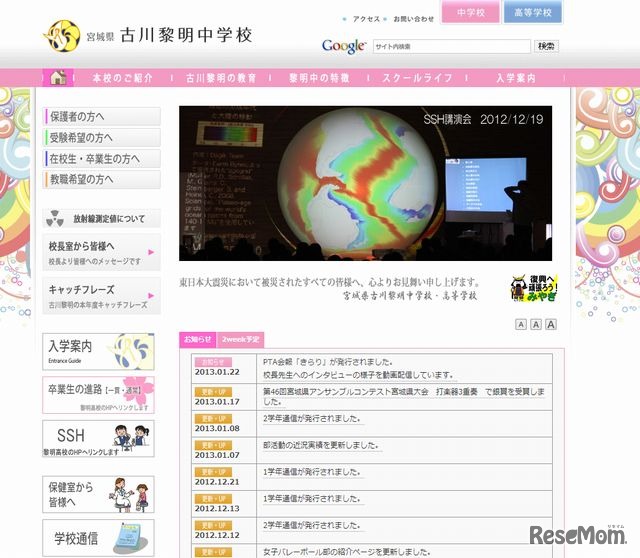 古川黎明中学校のホームページ