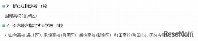 東京都教育委員会は1月31日、2013年度より国際高校を進学指導特別推進校に指定することを発表した。進学指導特別推進校は、現在指定している5校に国際高校を加えた6校となる。また、進学指導推進校は、現在指定している14校のうち、国際高校以外の13校を引き続き指定する。