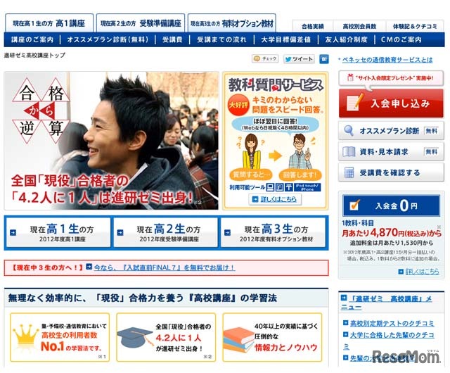 ベネッセの通信講座「進研ゼミ受験準備講座・大学受験講座」のUstreamライブ講義が2月2日(土)、3日(日)に無料提供される。進研ゼミ高校講座会員用テキスト「エンカレッジ」を使用したライブ講義となるが、会員以外でも無料で受講できる。対象は新高校3年生。