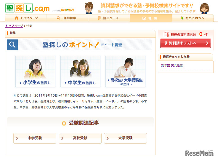 塾探し.com、特集ページ