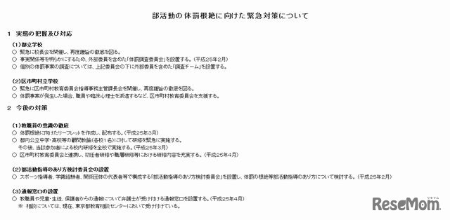 東京都教育委員会は2月8日、都内の公立学校を対象に実施した体罰実態調査の結果を公表した。2校の都立高校の運動部で体罰が確認されたことが明らかになった。