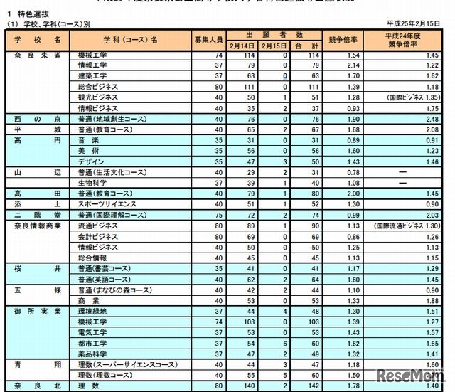 【高校受験2013】奈良県公立高校の出願状況、平均1.37倍 1枚目の写真・画像
