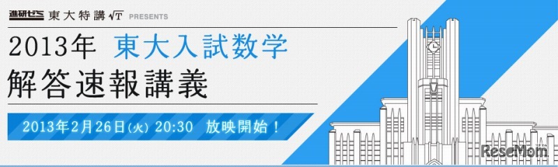 ベネッセコーポレーションの通信講座「進研ゼミ 東大特講√T(ルートティ)」は、2013年度東京大学入試2次試験2日目の2月26日、出題された数学問題の解答速報をWebで無料配信する。