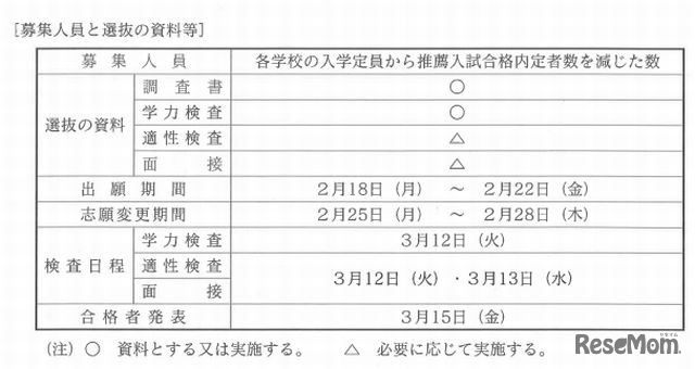 第1次選抜の日程等