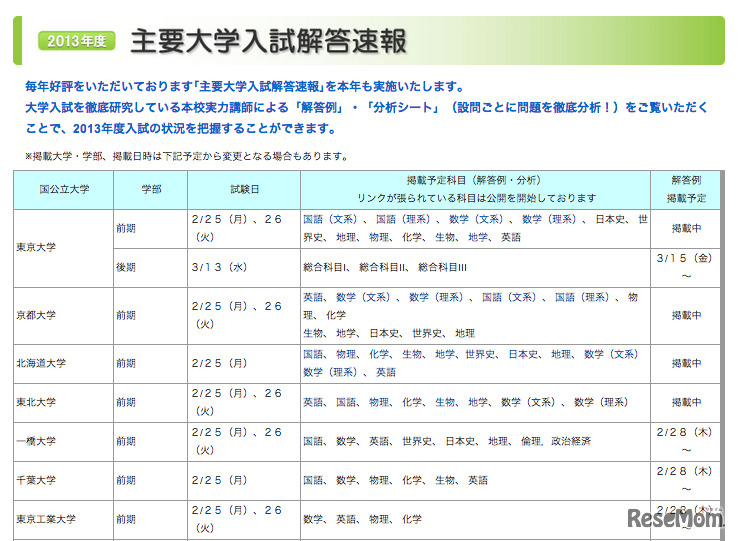 東進・代ゼミ・駿台は、2月26日に実施された東京大学2次試験前期日程2日目の解答速報を各社のWebサイトで開始した。26日の20:30現在公開されているのは、同日実施された東京大学の化学、生物、地学、日本史、世界史の5科目となっている。