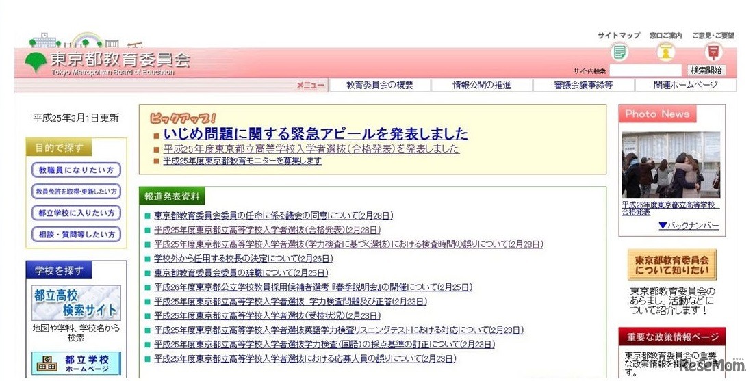 東京都人事委員会事務局は2月28日、東京都職員採用試験(選考)の実施について発表した。東京都人事委員会が実施する、平成25年度の東京都職員採用試験(選考)の区分(職種)および採用予定者数等が決まったことを受けての発表となる。