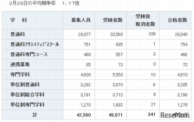 神奈川県教育委員会は2月28日、公立高校一般募集共通選抜の合格発表と2次募集の概要を発表した。平均競争倍率は、全日制が1.17倍、定時制が1.14倍、通信制が1.0倍となった。2次募集は、全日制が23校180人、定時制は1校6人募集する。