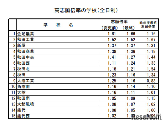 高志望倍率の学校(全日制)