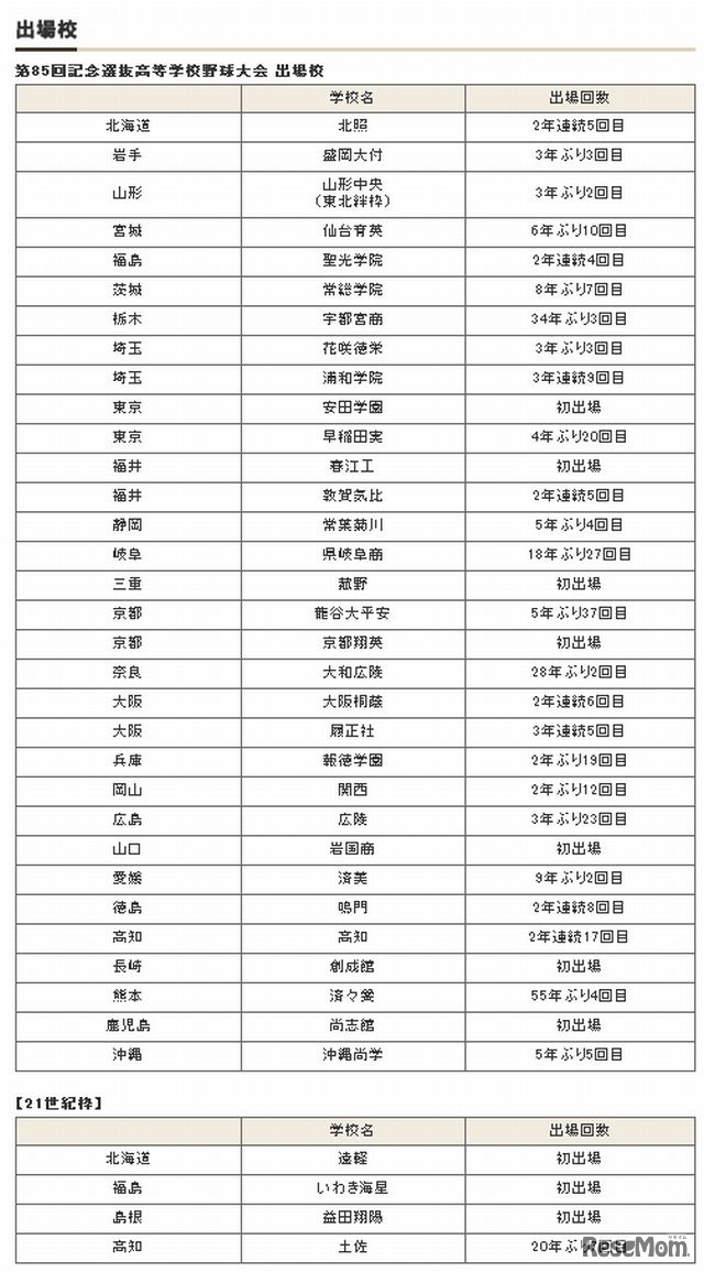 3月22日に開幕する「第85回記念選抜高校野球大会」(毎日新聞社、日本高校野球連盟主催)の組み合わせ抽選会が3月15日、毎日新聞大阪本社で行われた。出場校36校が参加し、組み合わせが決定した。