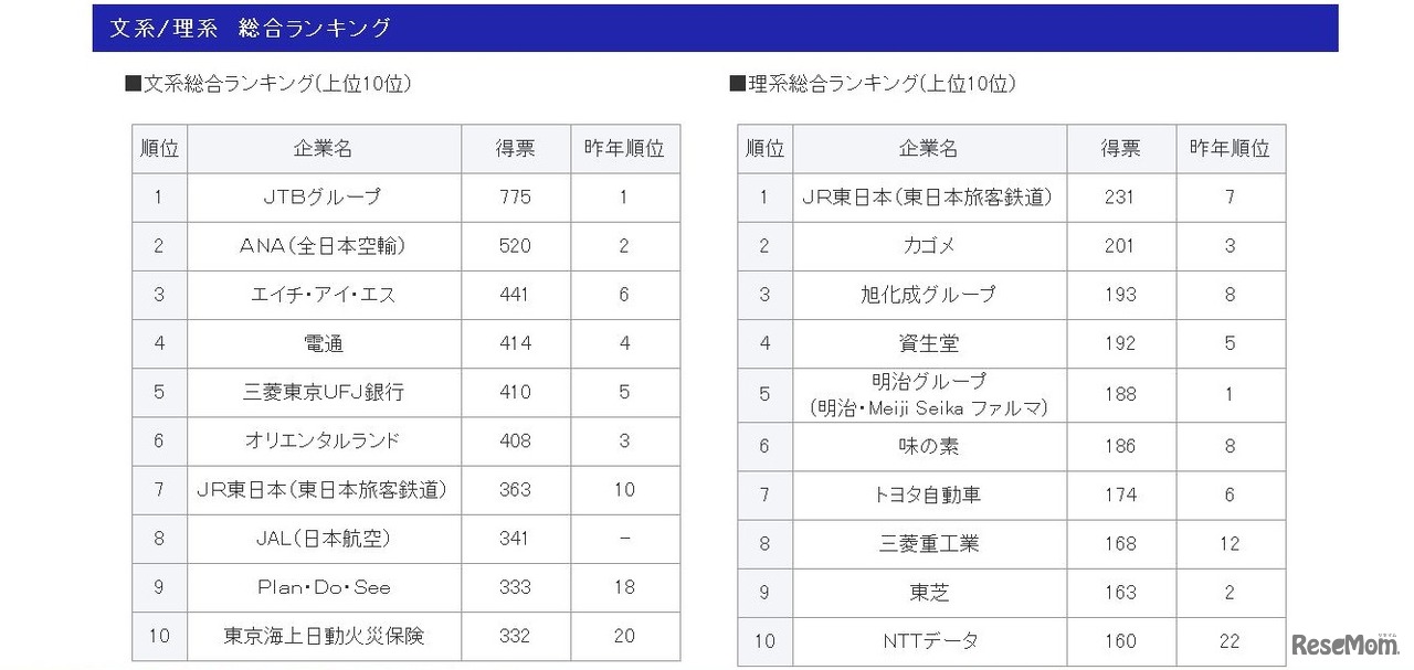 マイナビは3月28日、「2014卒マイナビ大学生就職企業人気ランキング」において、2014年卒業予定者の調査結果、文系ランキングと理系ランキングの各上位100社を発表した。理系は自身の専攻を活かせる企業、理系大学院生は技術力が高い企業を選ぶ傾向となった。