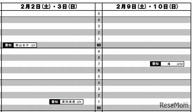 結果R4偏差値(女子、2月2日-3日、2月9日-10日)