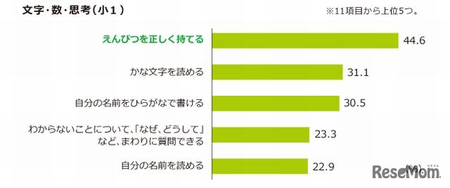 ベネッセ次世代育成研究所が2012年1~2月に実施した「幼児期から小学1年生の家庭教育調査」によると、「生活習慣」が定着している子どもほど「文字・数・思考」や「学びに向かう力」が高い傾向にあることがわかった。