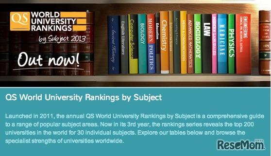 世界大学評価機関のQuacquarelli Symonds(QS)は5月8日、2013年の教科別世界大学ランキングを発表した。土木工学では東京大学が3位、京都大学が2位にランクインするなど、日本の大学の評価が高かった。
