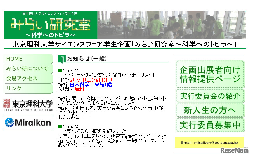 東京理科大学は、サイエンスフェア「みらい研究室~科学へのトビラ~」を6月8日・9日に日本科学未来館にて開催する。同学の学生が中心となって行われるイベントでは、実験を通じて科学や技術の楽しさを体験することができるという。