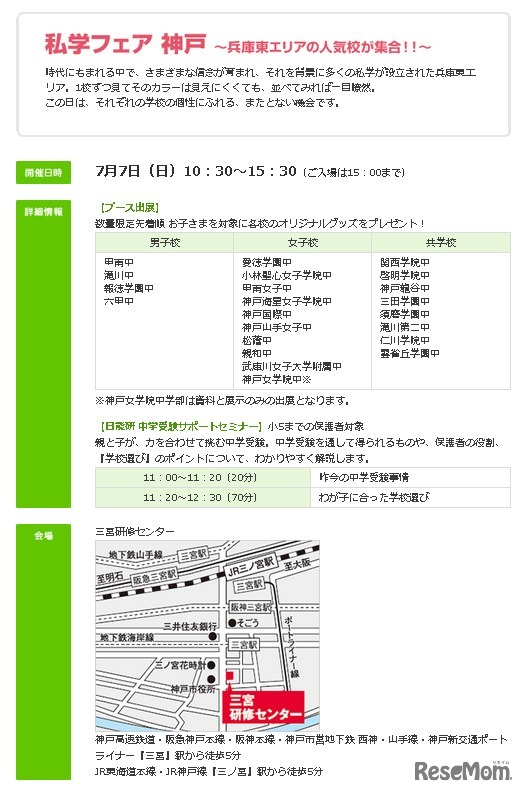 日能研は、関西エリアの私立中学校が一堂に会する「関西進学校フェア」「私学フェア 姫路」「私学フェア 神戸」をそれぞれ開催する。予約不要・入場無料。