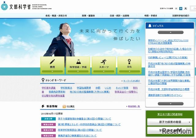 文部科学省のホームページ