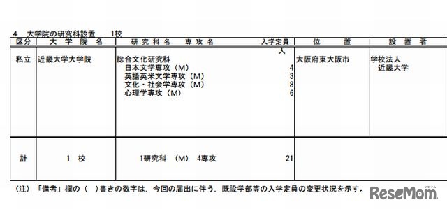 大学院の研究科設置