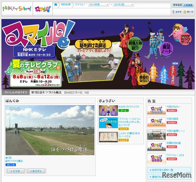 NHK for Schoolは、特別支援教育・学級活動のためのテレビ番組「スマイル!」と連動した電子黒板教材「レッツスマイル」を開発した。NHKのホームページより無料で利用できる。