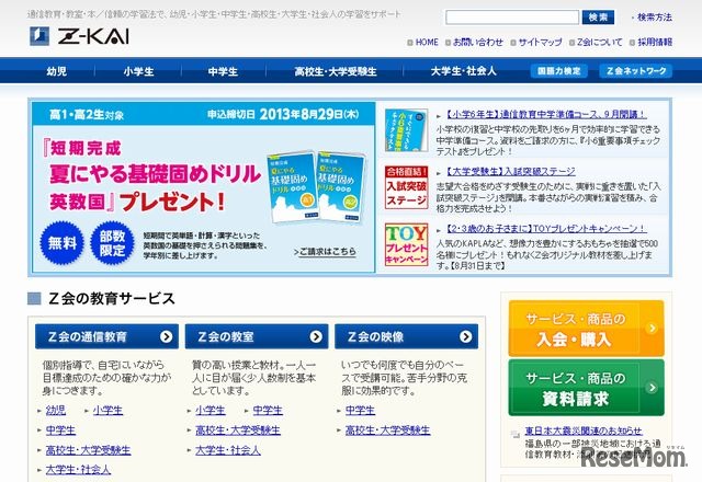 Z会の大学受験生向け通信教育では、9月より実践に重きをおいた「入試突破ステージ」を開講する。東大コースと京大コースに加え、難関国公立コースと、早慶上智コースを設け、志望大学別に対応したオリジナル問題を出題する。