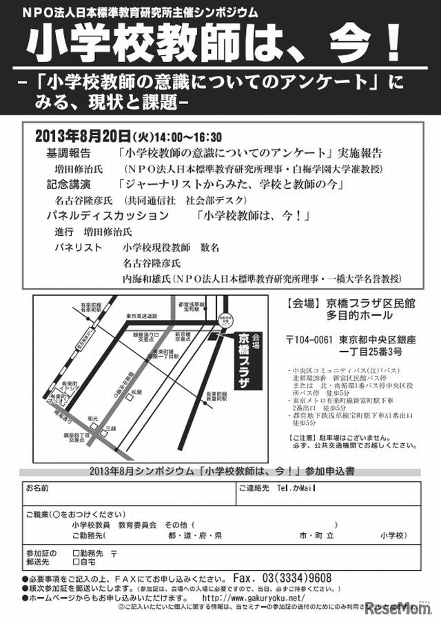 日本標準教育研究所は、8月20日(火)に小学校教師の現状と課題について学識者と現場教師が語るシンポジウムを開催する。参加費は無料で、事前申込みが必要。