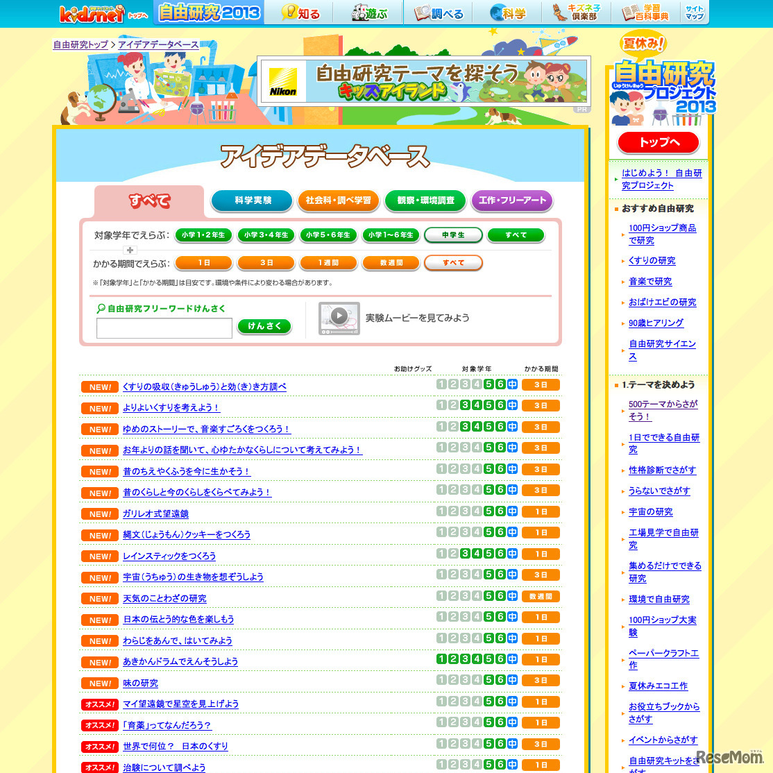 夏休みも後半に入ったが、宿題は進んでいるだろうか。自由研究というと小学生向けの情報が多いが、夏休みに自由研究に取り組む中学生も多い。ここでは、中学生の参考になるサイトを紹介する。