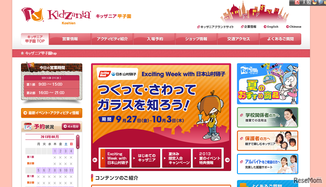 キッザニア甲子園はExciting Week with 日本山村硝子と題して、9月27日から10月3日の期間中「つくって・さわってガラスを知ろう」をテーマに、施設内にあるパビリオン「ガラス工房」でガラスに関連した限定アクティビティを開催する。