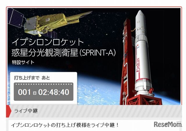 宇宙航空研究開発機構(JAXA)は8月25日、イプシロンロケット試験機による惑星分光観測衛星(SPRINT-A)の打上げ時刻を27日午後1時45分に設定したと発表した。午後1時25分からは、打ち上げの様子がインターネットでライブ中継される。