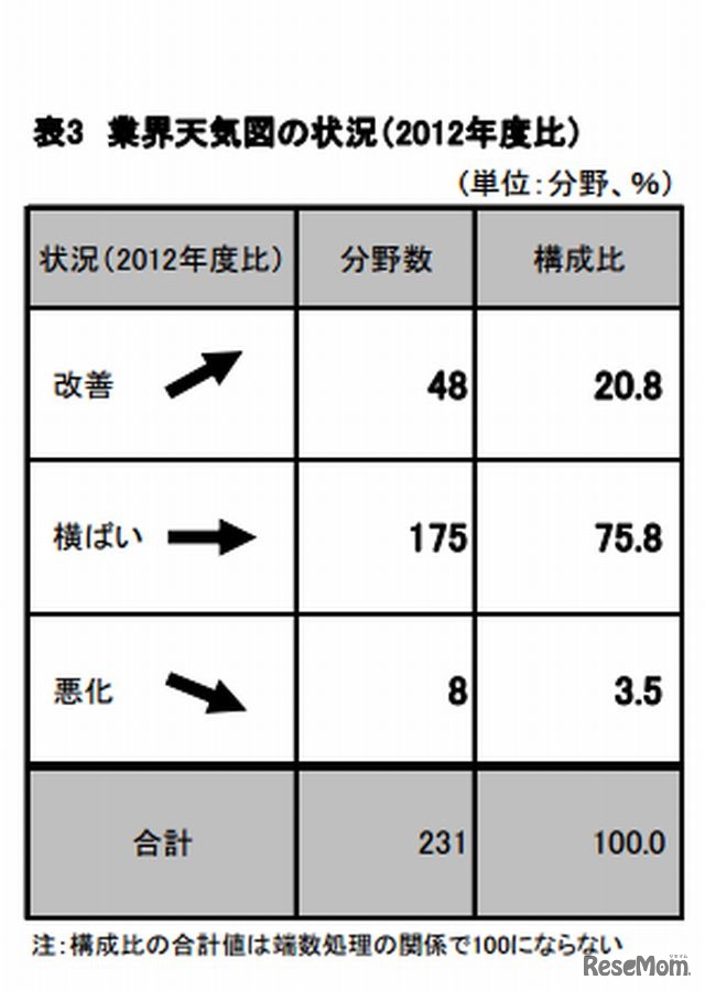 業界天気図の状況(2012年度比)