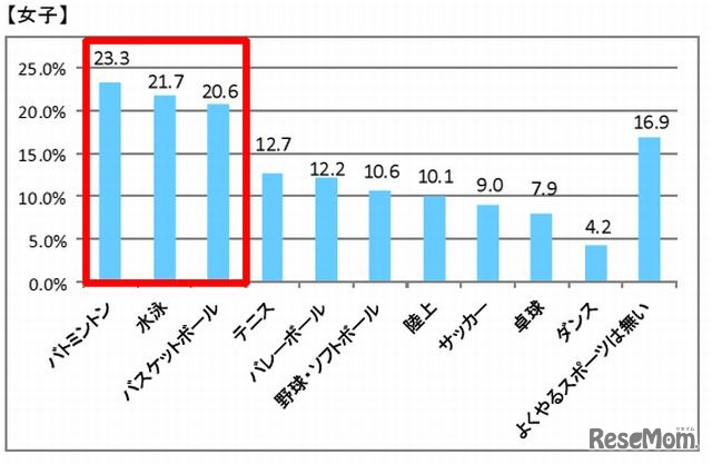 よくやっているスポーツ(女子)