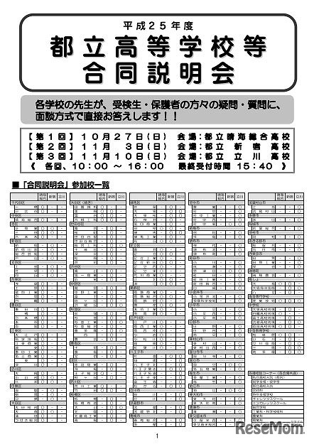 都立中高の合同説明会、10/27より3会場で開催 1枚目の写真・画像